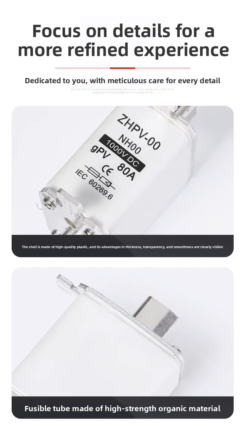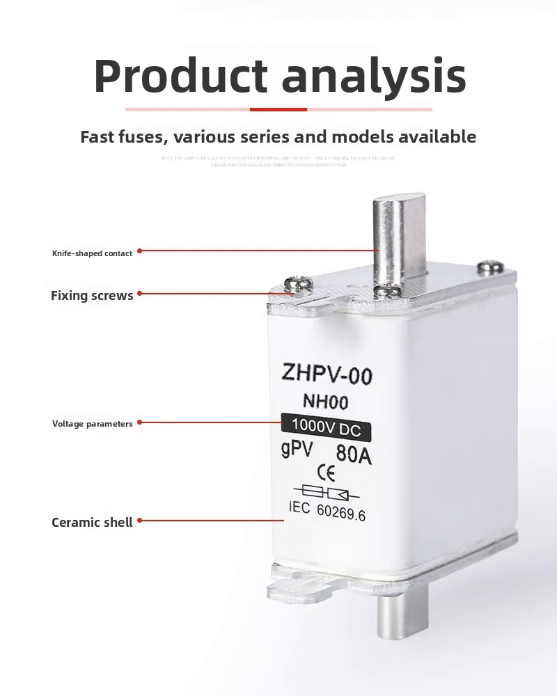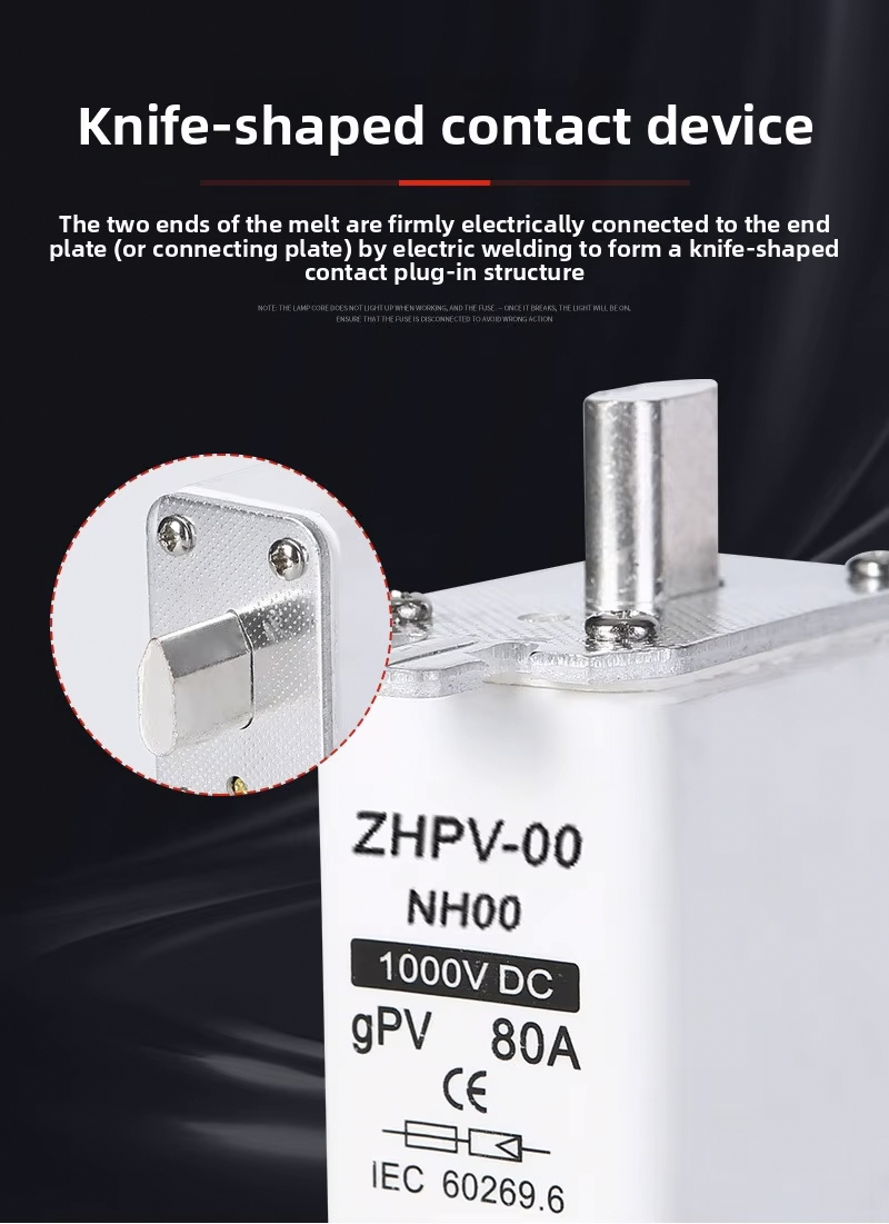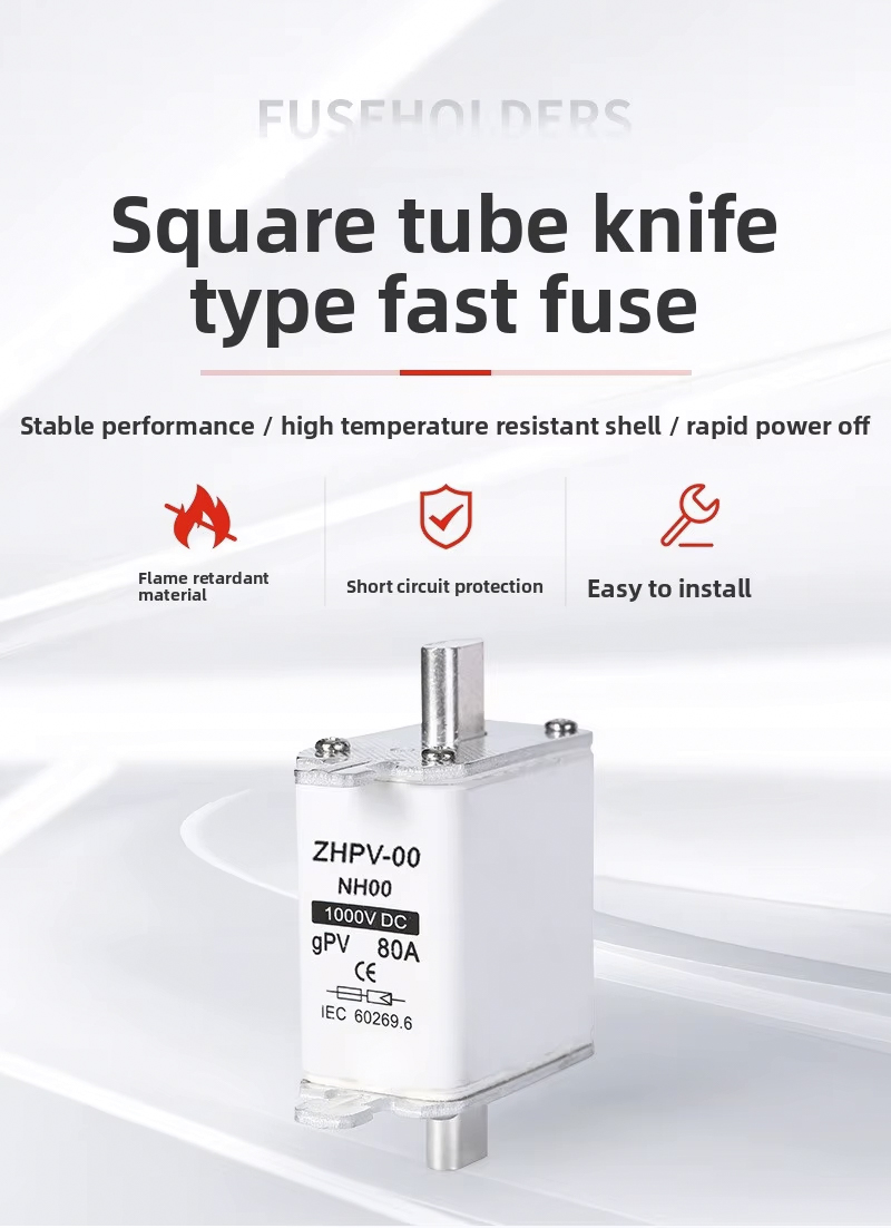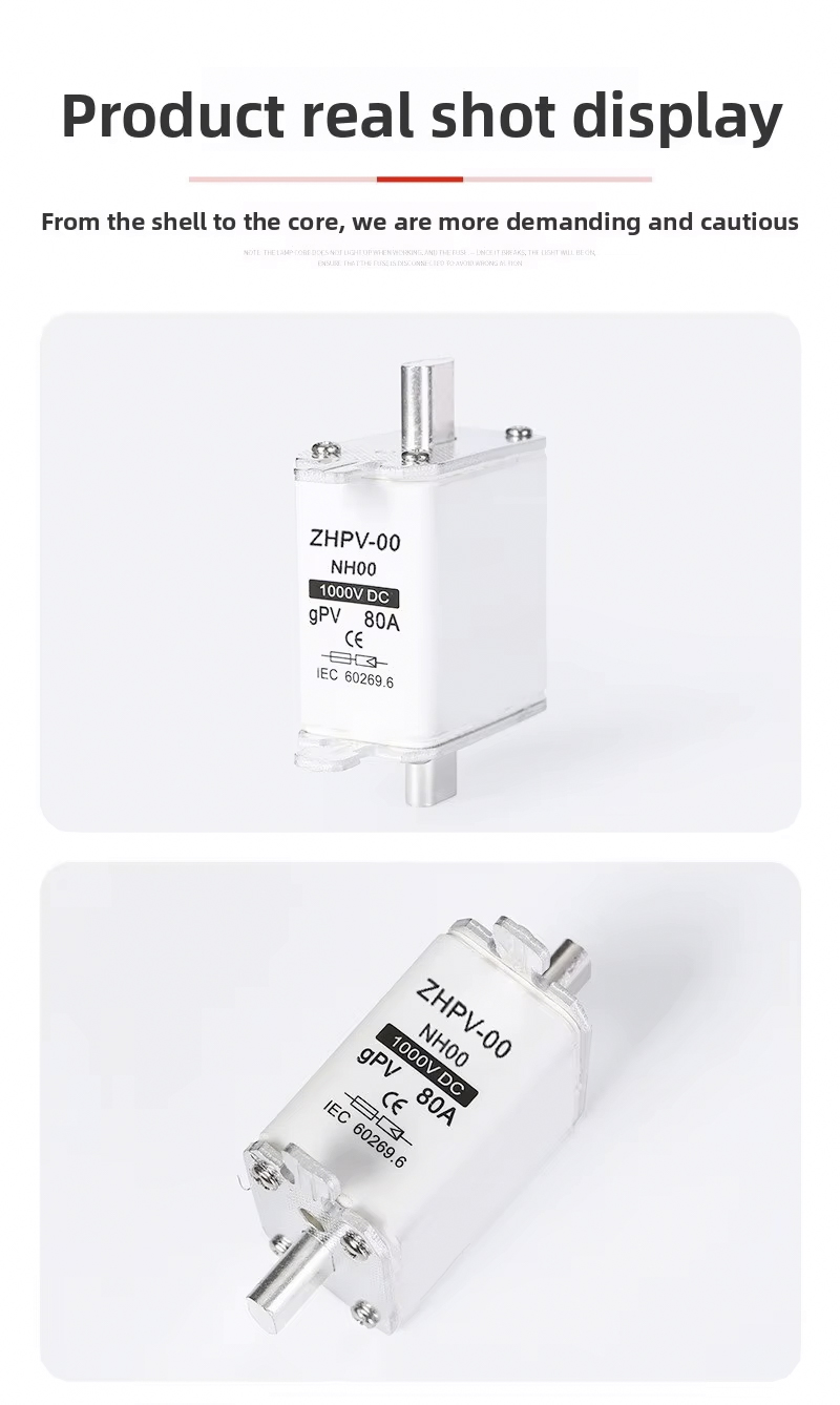Ginawa mula sa matibay na plastik, ang NH00-1000V IEC Low Voltage Photovoltaic Knife Fuse Plastic 80A 6ka Breaking Capacity ay nag-aalok ng mahusay na insulation at heat resistance, na tinitiyak ang matatag na pagganap sa mga demanding na kapaligiran. Sumusunod sa mga pamantayan ng IEC, ginagarantiyahan ng fuse na ito ang kaligtasan at natutugunan ang mga kinakailangan para sa mga modernong proyekto ng nababagong enerhiya. Ang disenyong uri ng kutsilyo ay nagbibigay-daan para sa madaling pag-install at pagpapalit, pagbabawas ng oras ng pagpapanatili at pagtiyak ng tuluy-tuloy na operasyon ng system. Piliin ang NH00-1000V IEC Low Voltage Photovoltaic Knife Fuse Plastic 80A 6ka Breaking Capacity para sa iyong solar o pang-industriya na aplikasyon upang makinabang mula sa pambihirang proteksyon, tibay, at pagsunod sa mga internasyonal na pamantayan sa kaligtasan.