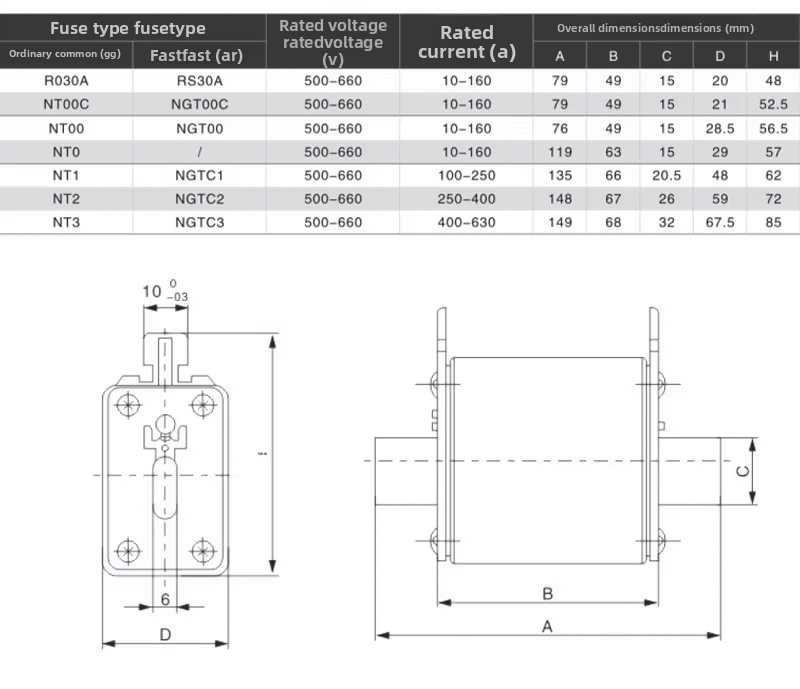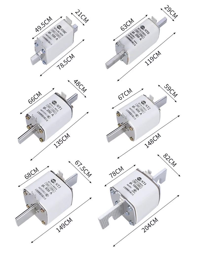 Ang mga NT/NH series square ceramic fuse ay karaniwang ginagamit sa mga pang-industriyang electrical equipment, power system at electronic equipment para protektahan ang mga circuit mula sa mga overload at short circuit.