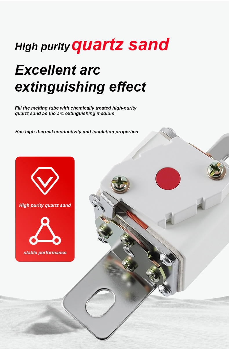 ay may naka-rate na boltahe na 500V at naka-rate na kasalukuyang 315A, na maaaring epektibong matiyak ang kaligtasan ng kuryente, maiwasan ang labis na karga at maikling circuit. Ang RSF-1K 500V-315A BC100KA fuse Links