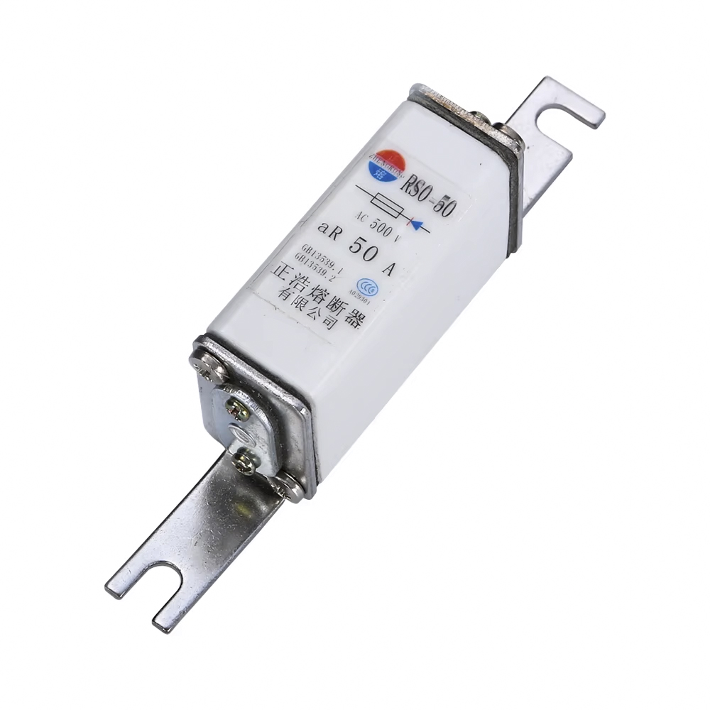 Ang RS0/RS3-50 500V Fuse ay isang square tube bolted fast fuse, na may rate na boltahe na 500V at isang breaking capacity na 50ka, na may magandang garantiya sa kaligtasan. Maaari itong magamit sa anumang transpormer at inverter.