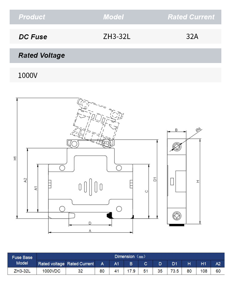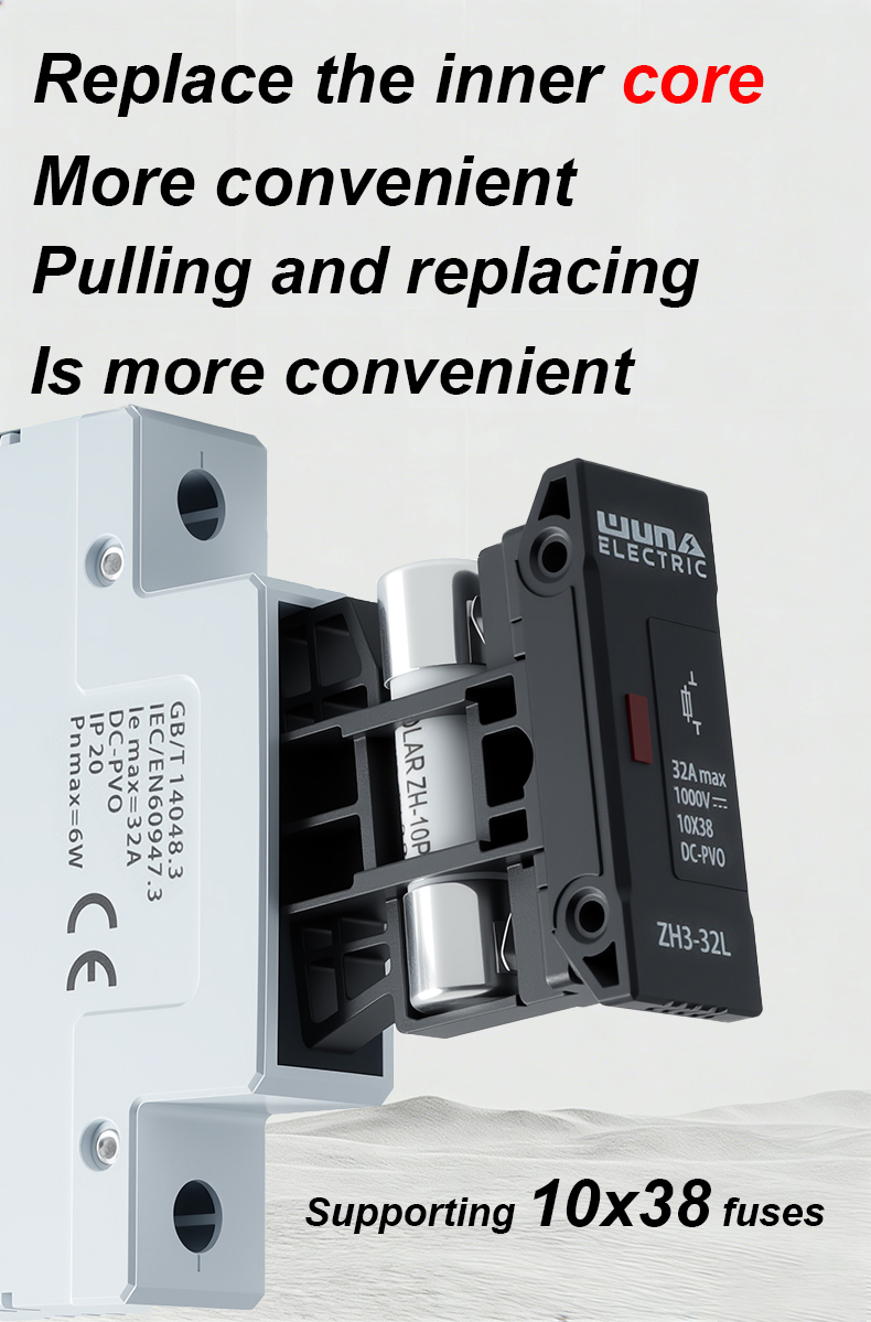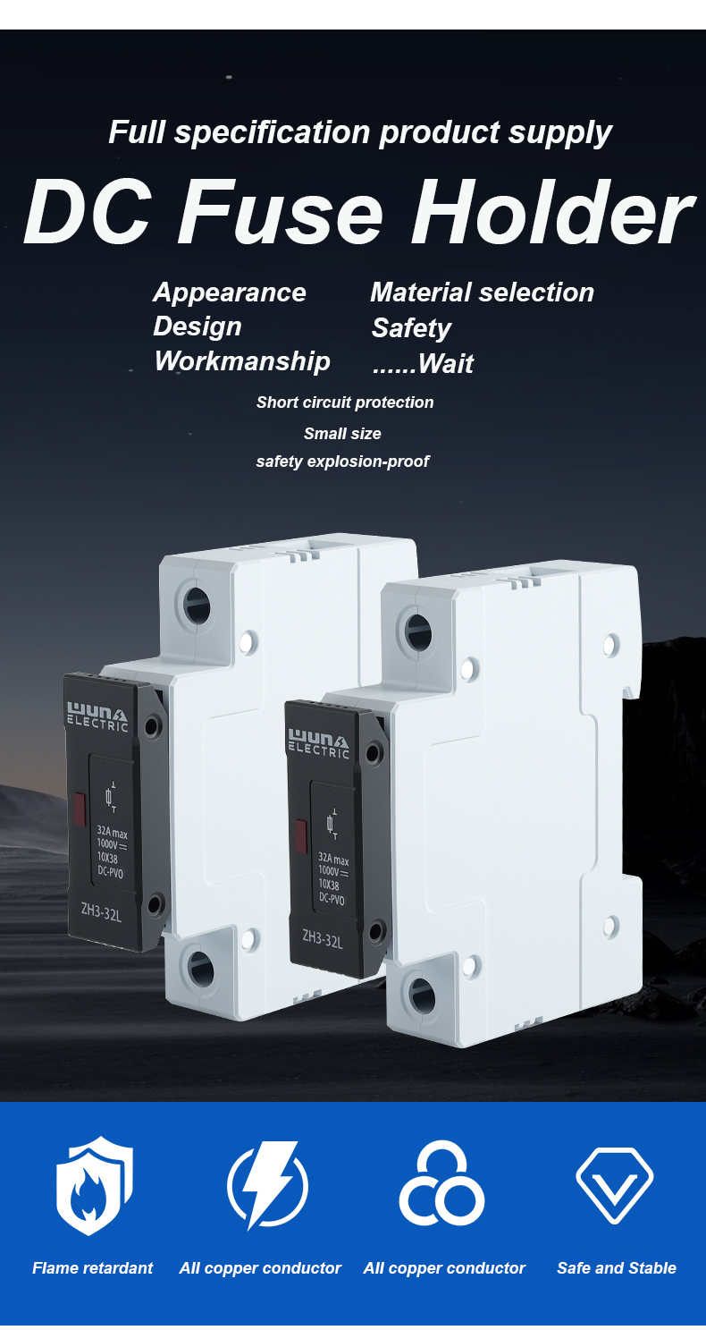 Ang ZH32L DC 1000V Fuse Holder ay isang high-performance na component na idinisenyo upang matiyak ang maaasahang proteksyon para sa mga electrical circuit sa photovoltaic at iba pang mga DC application. Nagtatampok ng matatag na konstruksyon at superior insulation, ang ZH32L DC 1000V Fuse Holder ay angkop para sa ligtas na paglalagay ng mga fuse na may rating na hanggang 1000V DC, na epektibong pumipigil sa overcurrent at short-circuit na pinsala.