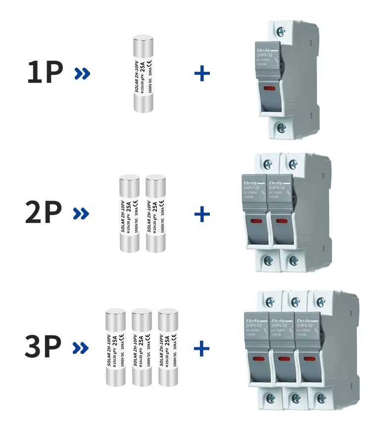 Ang 22 × 58 photovoltaic fuse base ng ZHPV-125 1000V DC fuse base ay ginagamit upang mai-install ang mga photovoltaic fuse sa kagamitan, na karaniwang ginagamit sa mga solar system, na may pangunahing sukat ng 22mm × 58mm. Ang ZHPV-125 1000V DC fuse base ay angkop para sa karaniwang mga photovoltaic fuse at karaniwang gawa sa mga materyales na lumalaban sa temperatura, na maaaring makatiis sa mga kondisyon ng pagtatrabaho sa mga kapaligiran na may mataas na temperatura. Mayroon itong magandang paglaban sa panahon at paglaban ng kaagnasan, tinitiyak ang pangmatagalang matatag na operasyon sa mga panlabas na kapaligiran.